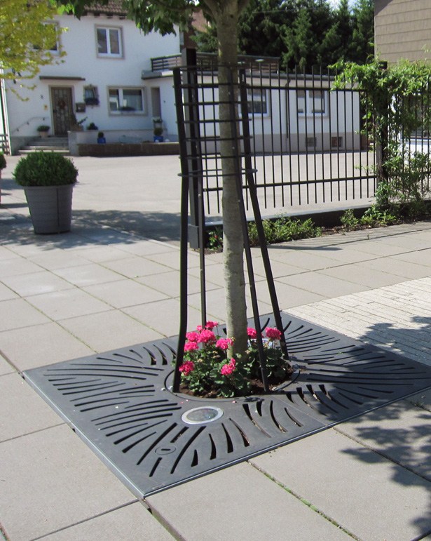 In addition to their high functionality and resilience, the tree grates painted in elegant graphite black also play a role in design with